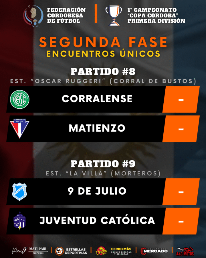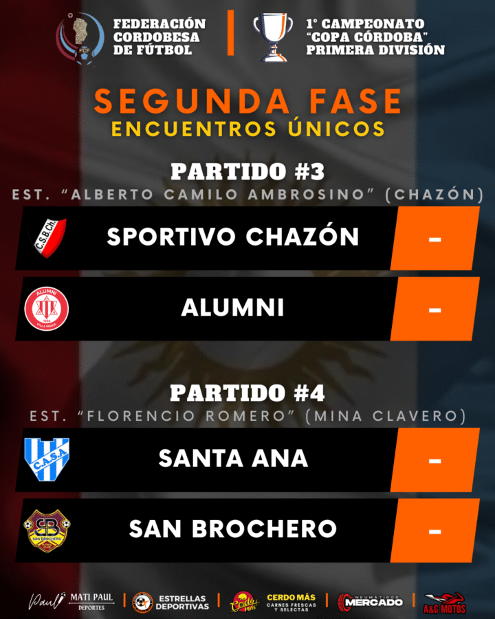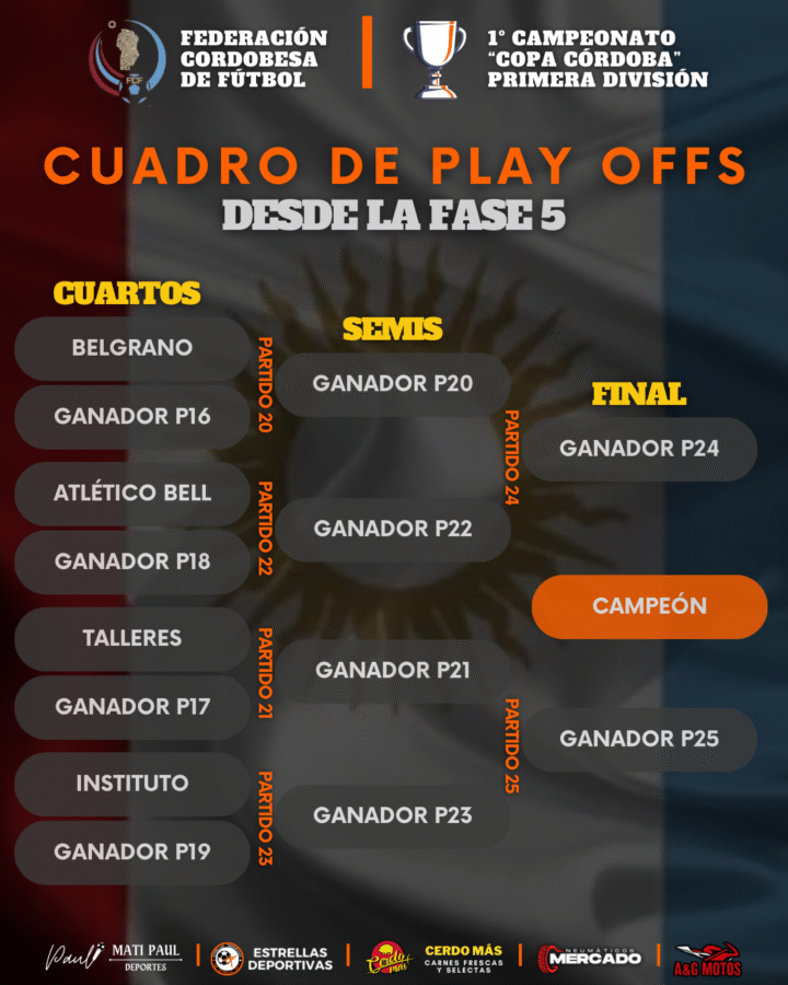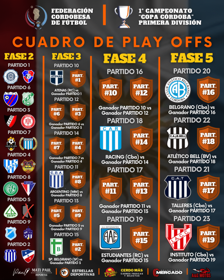 Luego de estos duelos se irán sumando los equipos que compiten en categorías de AFA: Los tres del Federal A (Atenas, Argentino y Sportivo Belgrano) en la tercer etapa, los dos de Primera Nacional (Racing y Estudiantes) en la cuarta, y los tres de Primera División (Talleres, Instituto y Belgrano) más el último campeón del Provincial (Bell) en la quinta fase.
