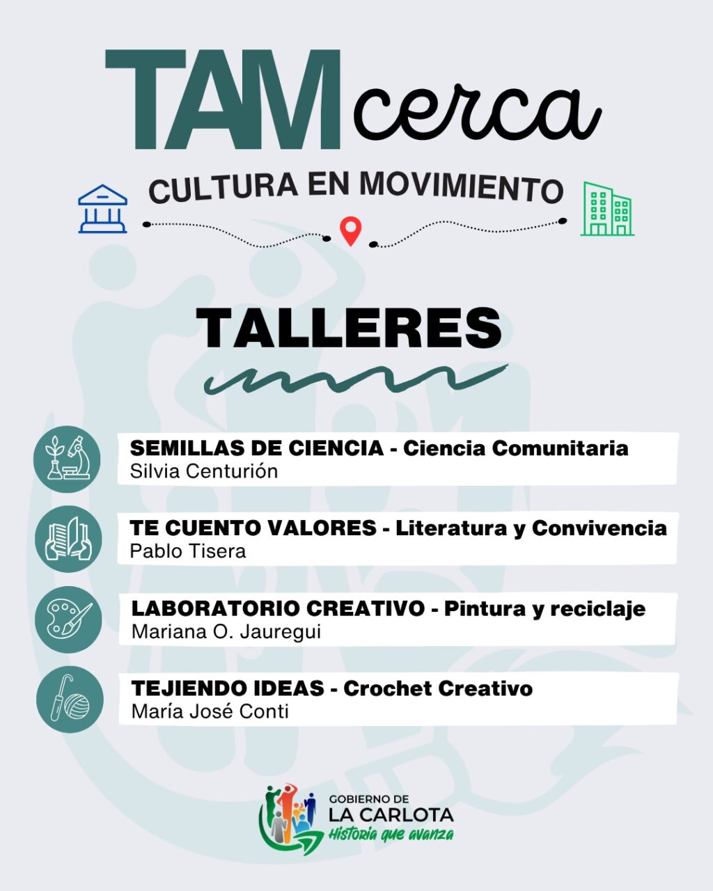 La Carlota se prepara para un trimestre donde el arte y la solidaridad serán los protagonistas en cada rincón de la ciudad. Bajo la consigna «TAM Cerca», la Secretaría de Educación y Cultura pone en marcha un dispositivo itinerante que llevará talleres y experiencias creativas a los barrios durante los meses de abril, mayo y junio.